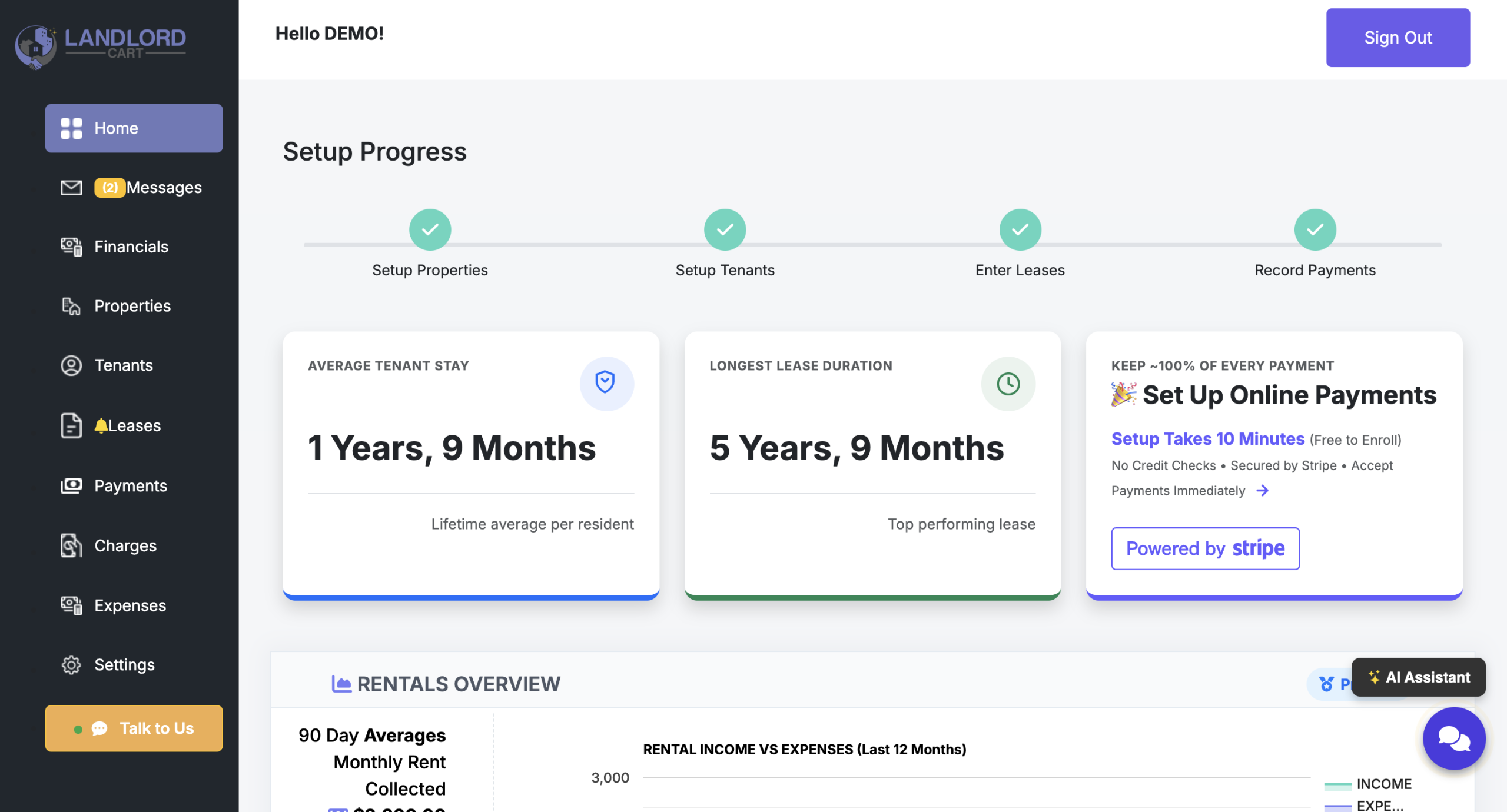 Landlord Cart utilizes advanced AI to streamline communication and financial data entry for both you and your tenants. These features are designed to save time by handling routine inquiries and automating record-keeping.